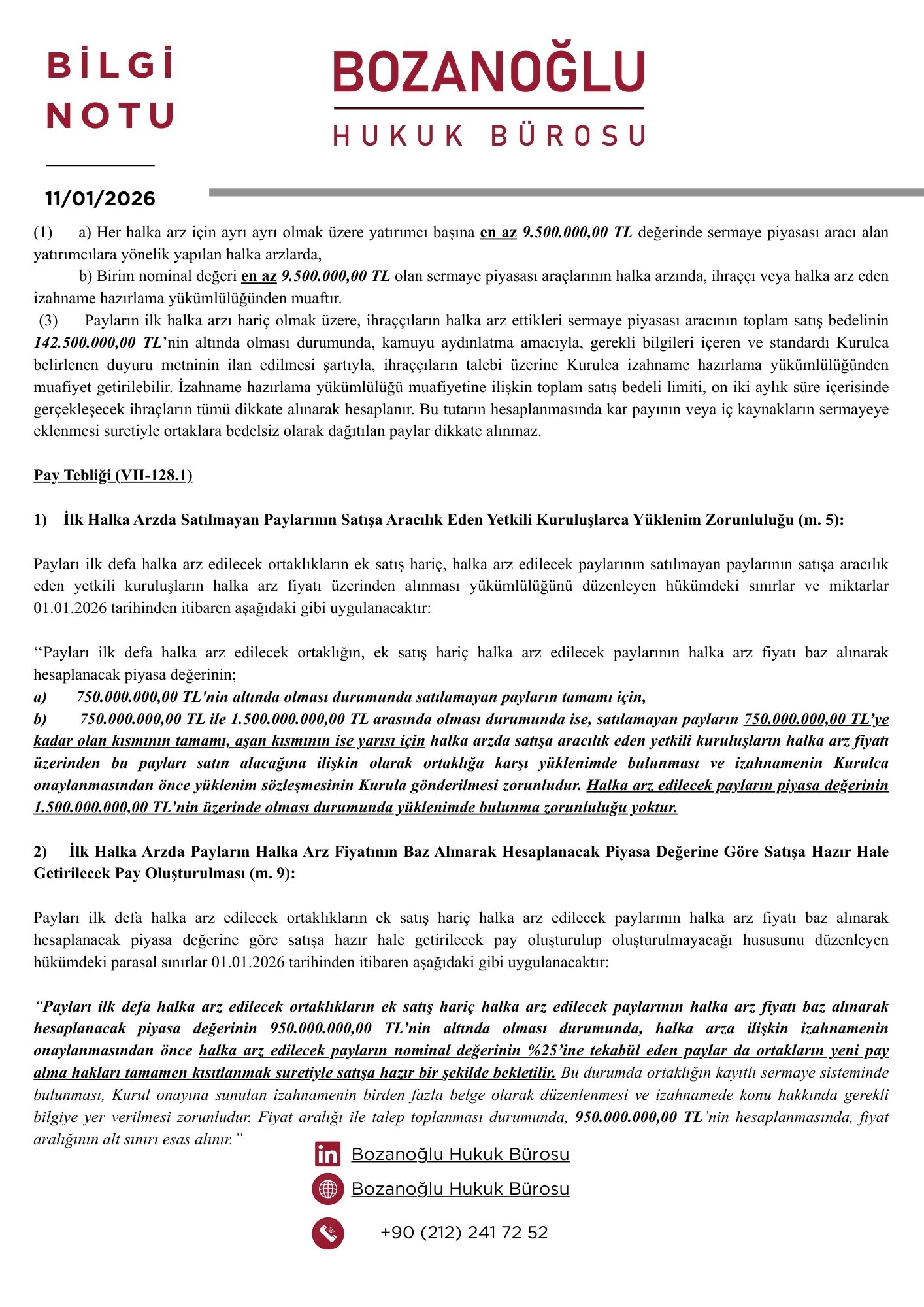 31 Aralık 2025 tarihli Sermaye Piyasası Kurulu Bülteni ile Gelen Değişiklikler Hk.
