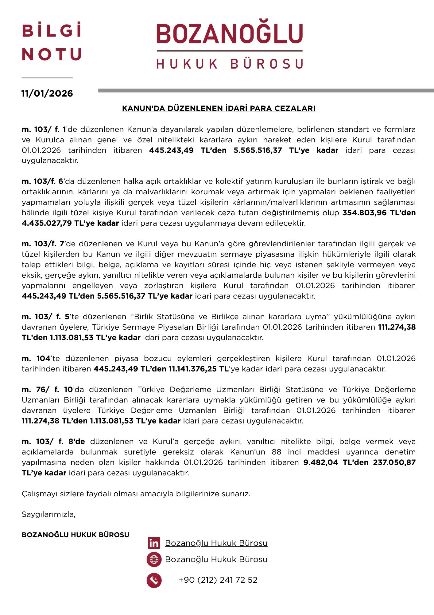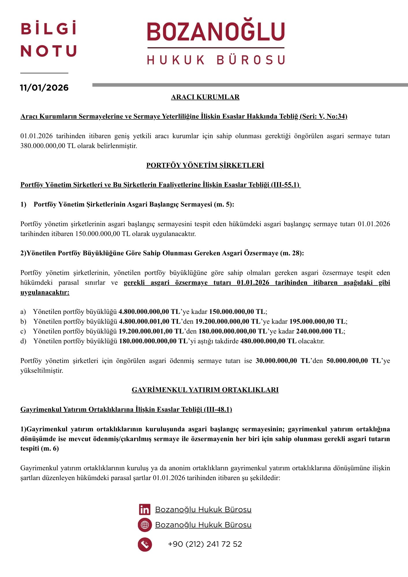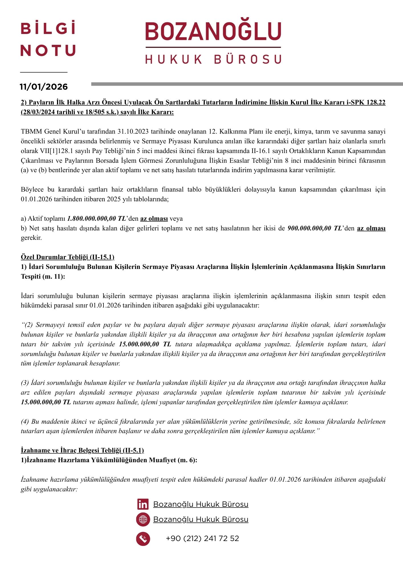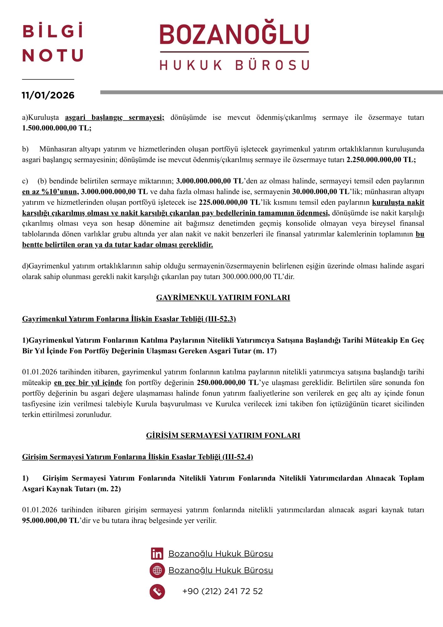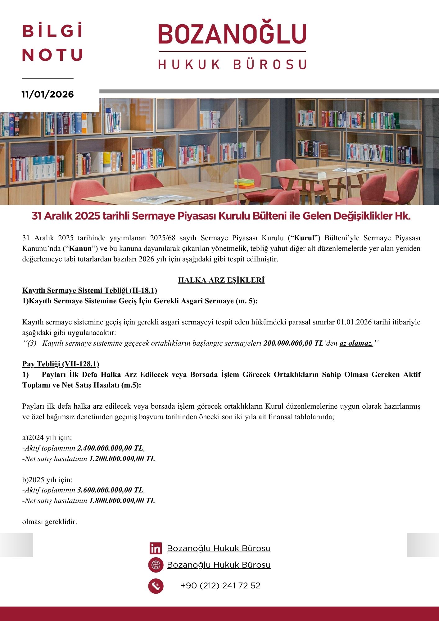 31 Aralık 2025 tarihli Sermaye Piyasası Kurulu Bülteni ile Gelen Değişiklikler Hk.