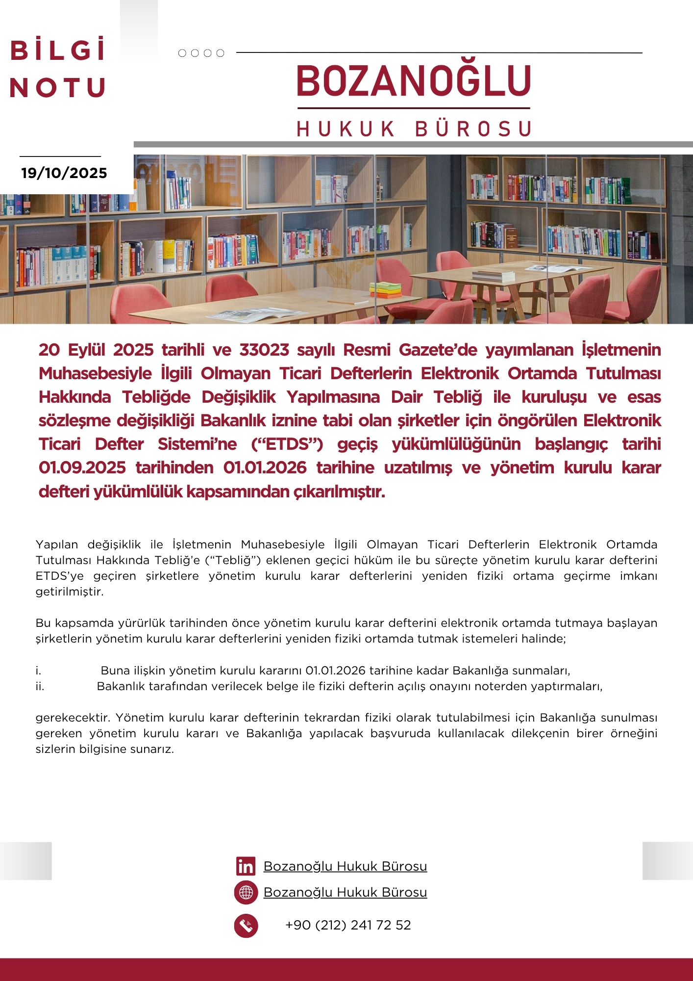 Elektronik Ticari Defter Sistemi’ne (“ETDS”) geçiş yükümlülüğü hakkında bilgi notu