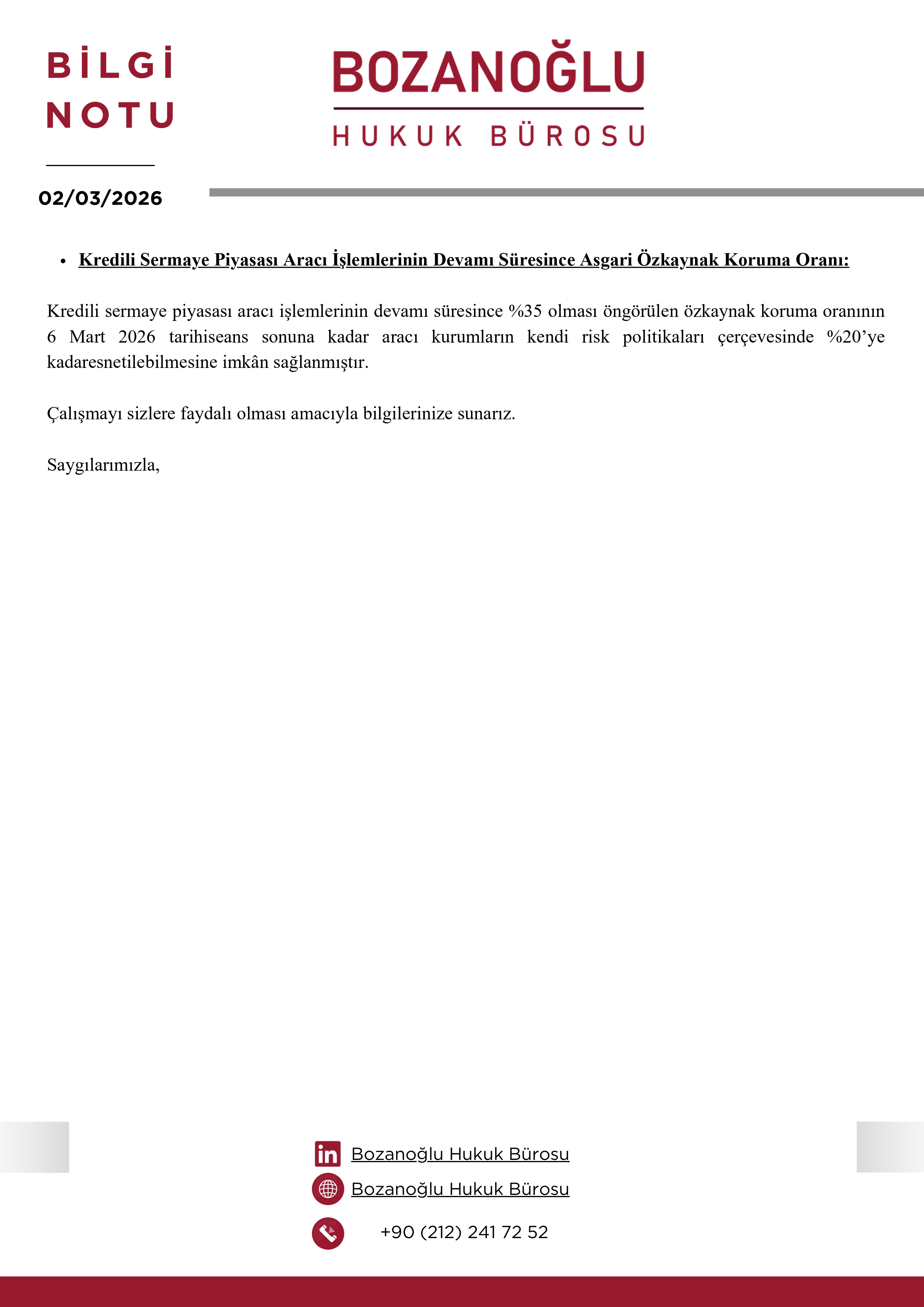 Sermaye Piyasası Kurulu’nun 1 Mart 2026 tarihli ve 2026/11 sayılı Bülteni Hk.