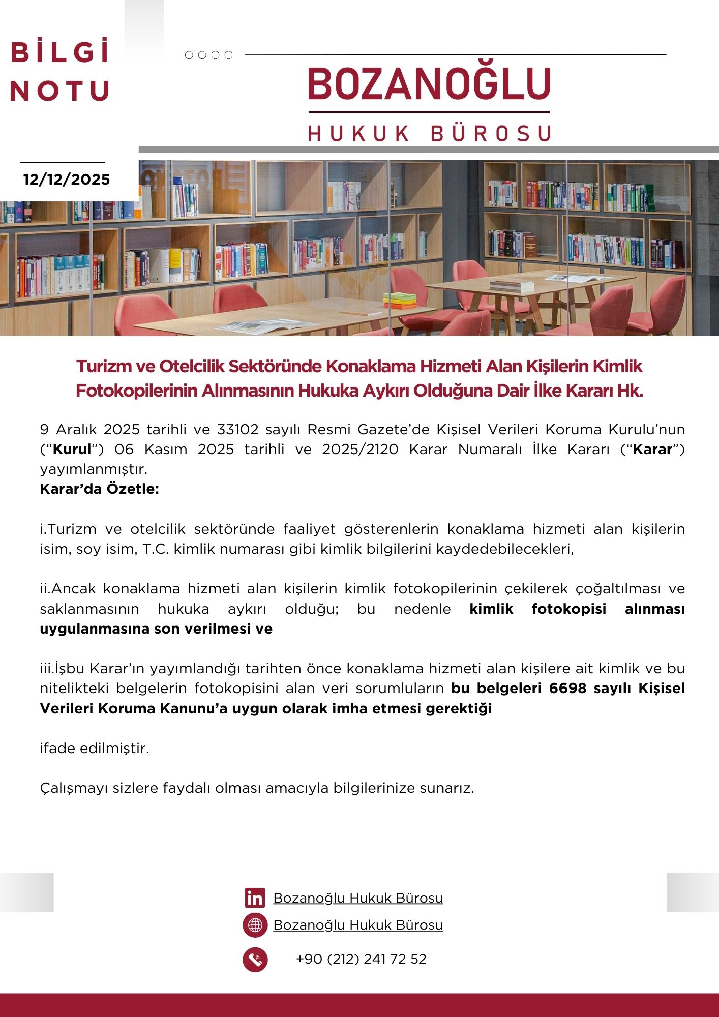 Turizm ve Otelcilik Sektöründe Konaklama Hizmetine Dair İlke Kararı Hk.