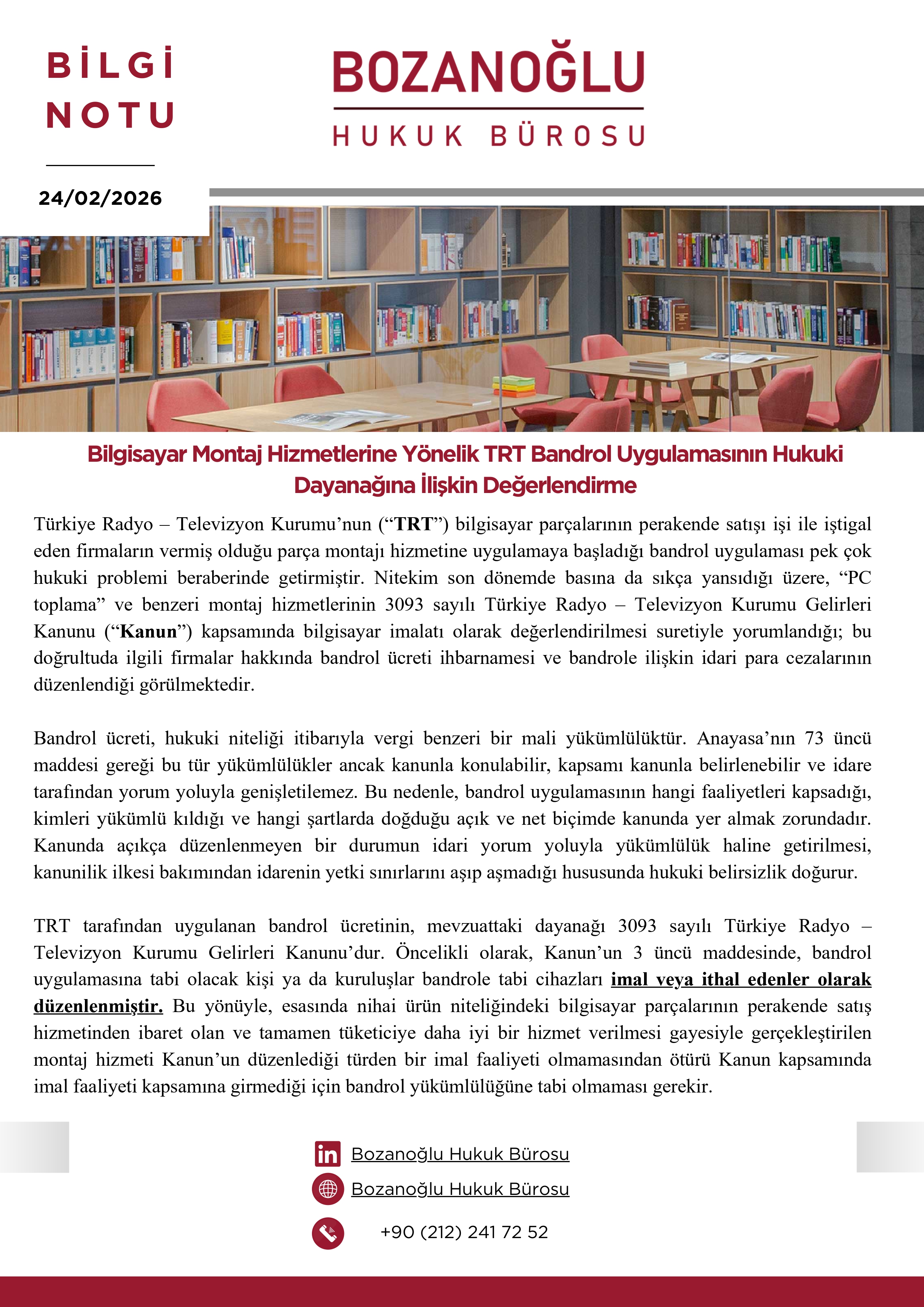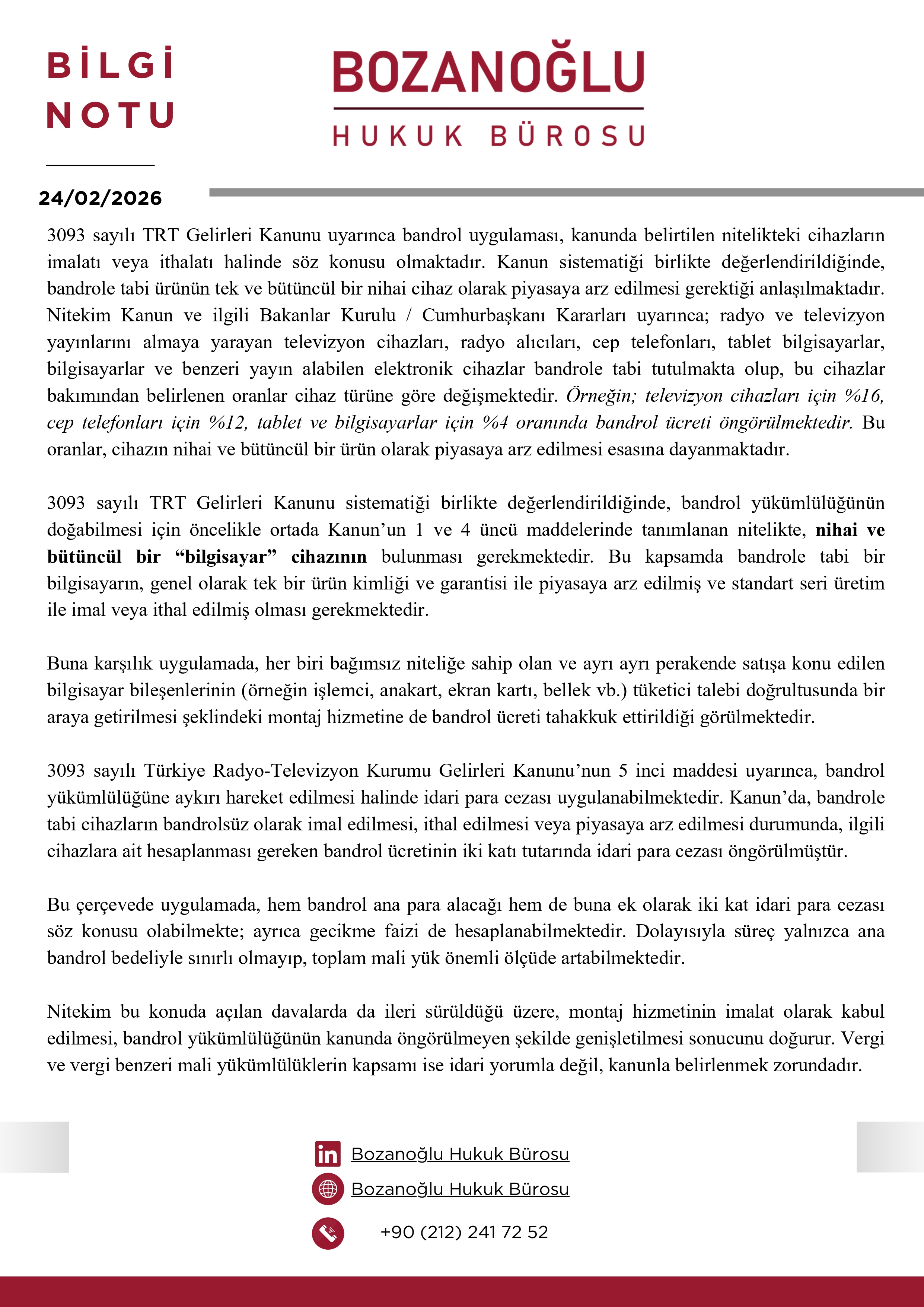 Bilgisayar Montaj Hizmetlerine Yönelik TRT Bandrol Uygulaması Hk.