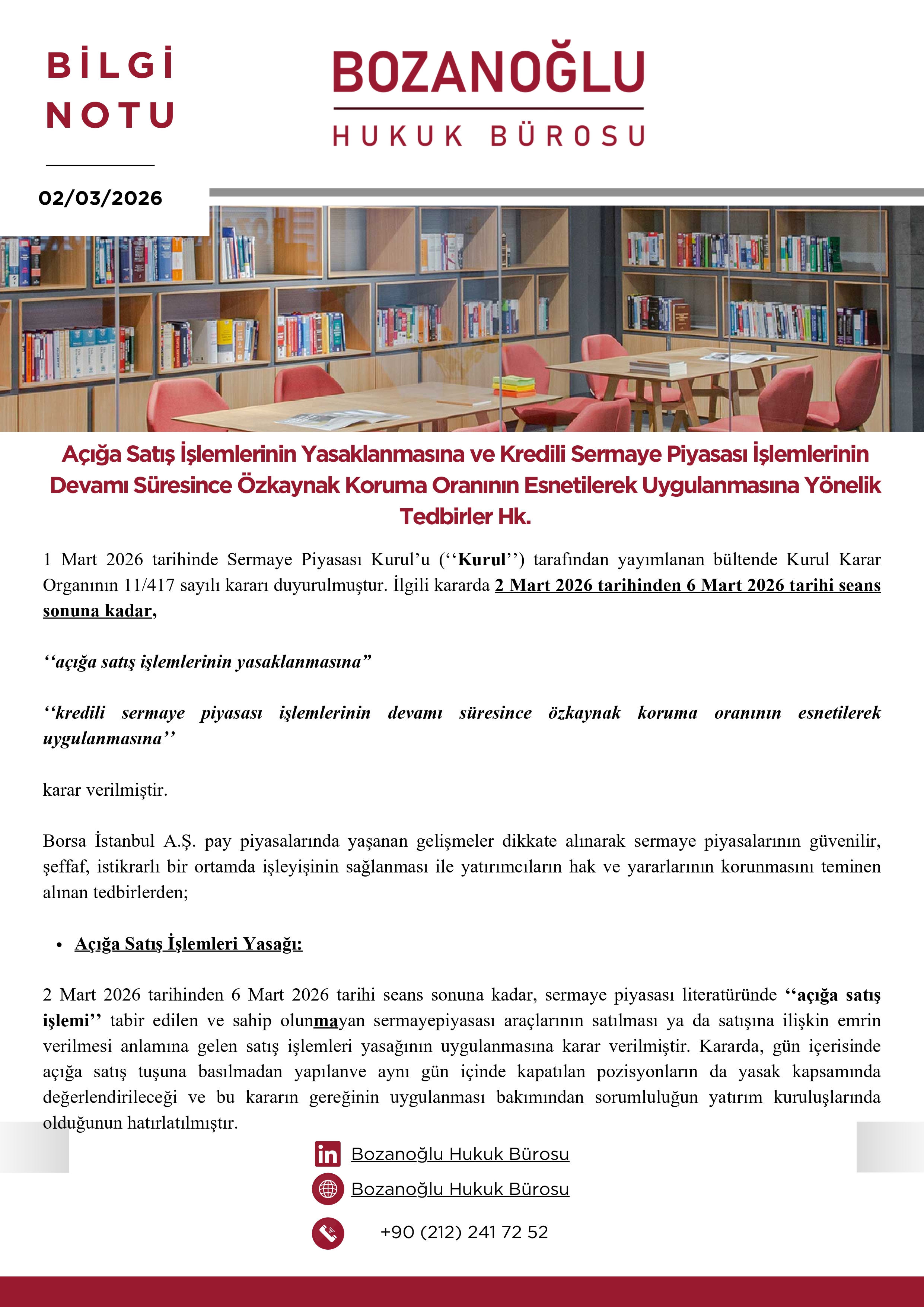 Sermaye Piyasası Kurulu’nun 1 Mart 2026 tarihli ve 2026/11 sayılı Bülteni Hk.